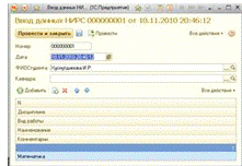 шапки документа. Поле «Дата» заполняется автоматически, но внесенные данные