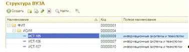 В справочнике «СтруктураВУЗА» является иерархическим, в нем показана