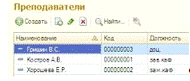 В справочнике «Преподаватели» представлены данные о преподавателях (см.