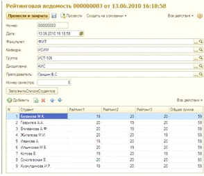 Рисунок 7.5 Документ «РейтинговаяВедомость»