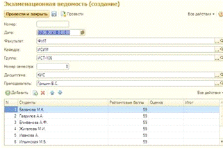 Рис. 7.6. Документ «ЭкзаменационнаяВедомость»