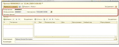 При создании документа «Приказы» следует в первую очередь заполнить поля