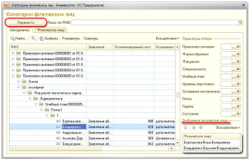 После выбора физических лиц необходимо нажать кнопку «Перенести» для