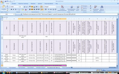 приложением Microsoft Excel как базы данных. Были выполнены необходимые