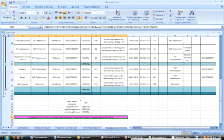 итогов, консолидация данных, создание сводной таблицы и построение диаграммы.