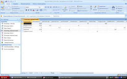 называется заголовком столбцов). На пересечении столбца и строки располагается