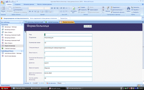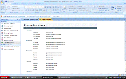источника данных выбираем таблицу «Больница». Далее выполняем следующие