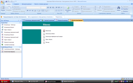 данных»,нажмите кнопку «Диспетчер кнопочных форм»;