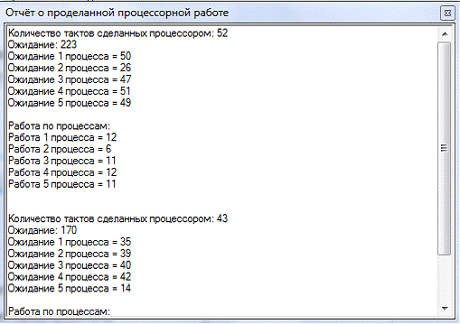 waitts + "\nРабота по процессам: " +