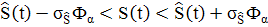 светло-синим цветом), нижний и верхний интервалы для S(t)