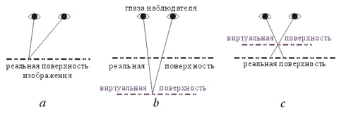 в одно и то же место, и смотрящему кажется, что видимое изображение находится
