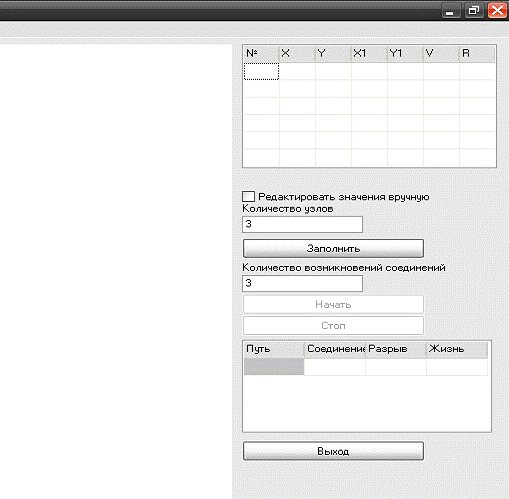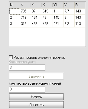 Рисунок 5 Входная форма начальных параметров мобильных узлов, их