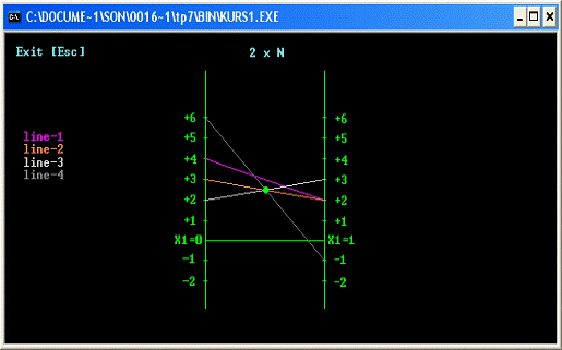 1'); end;n>=2 then begin setcolor(6); OutTextXY(10,110, 'line - 2');