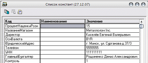 построении отчетных форм. Информация, внесенная в константу время от времени