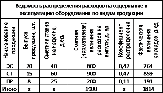 эксплуатацию оборудования и сумма общепроизводственные расходов;