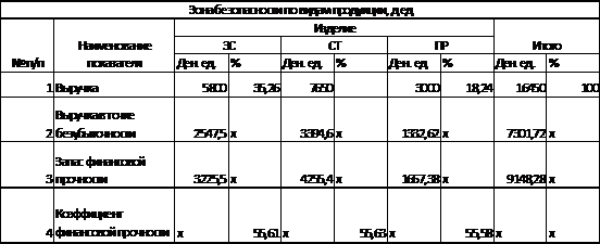 коэффициент финансовой прочности равный по всем изделиям 55,6% , т.е. выручка может