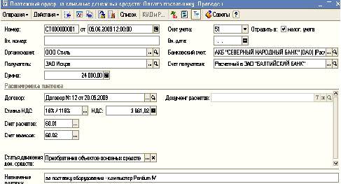– Организация - ООО «Стиль»; Контрагент -