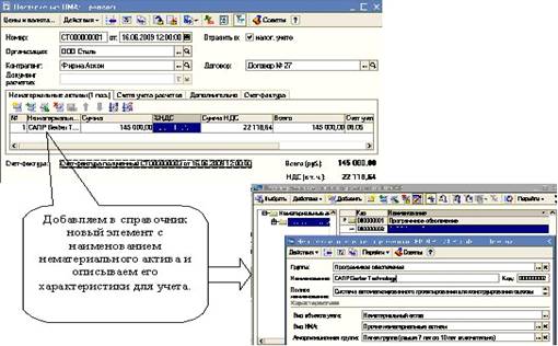 ü На закладке нематериальный актив: