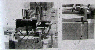 - стальные водоохлаждаемые стеновые панели; 11 - электрод; 12 - робот для