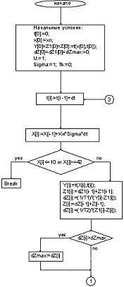 begin[i]:=x[i-1]+ku*sigma*dt;(x[i]<=9) or (x[i]>=40) then break;[i]:=f(x[i],t[i]);[i]:=dz1[i-1]+z1[i-1];[i]:=(1/T1)*(y[i]-z1[i]);[i]:=dz[i-1]+z[i-1];[i]:=(1/T2)*(z1[i]-z[i]);dz[i]>dzmax