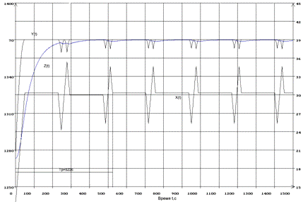 do[i]:=t[i-1]+dt;[i]:=x[i-1]+ku*sigma*dt;(x[i]<=9) or (x[i]>=40) then break;[i]:=f(x[i],t[i]);[i]:=dz1[i-1]+z1[i-1];[i]:=(1/T1)*(y[i]-z1[i]);[i]:=dz[i-1]+z[i-1];[i]:=(1/T2)*(z1[i]-z[i]);dz[i]>dzmax