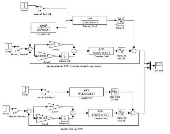 4.2 Сравнение работы одноконтурной САР и САР с компенсацией