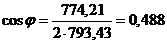 Далее определяются cosj и sinj нагрузки данного кабеля, о.е.,