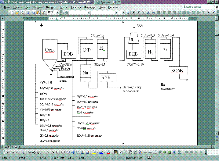 сделан их пересчет в мг-экв/кг. Затем была выбрана схема обработки воды: