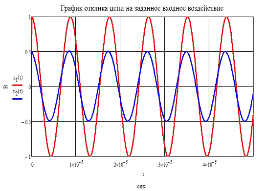 · отклик цепи u2( t ) на заданное входное воздействие u1( t );
