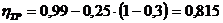 - КПД транспорта тепла при номинальной нагрузке блока.