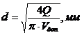 d1 = (4Q1/πvдоп) 0,5 = (4*0,00015/3,14*0,15) 0,5