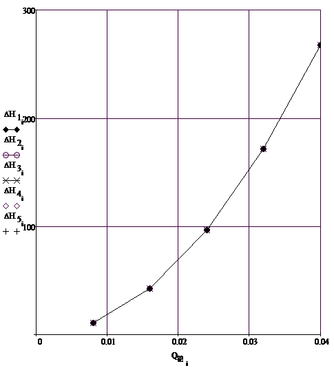 трубопровода и всех его участков в диапазоне расходов от 0 до Qmax.