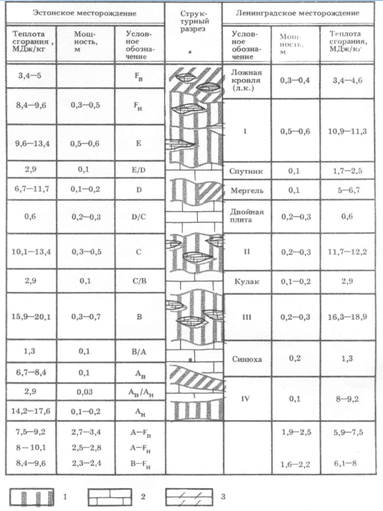 Таблица 1. Качество сланцев основных