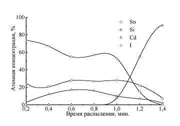 оже-спектроскопии структуры SnI2-Cd-стекло было обнаружено: