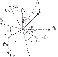 равен α = φ - 30°, а угол β между векторами UBC и IB