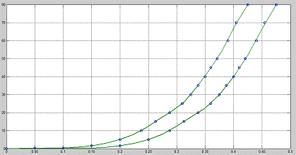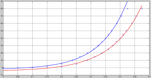 % апроксимируем второй график= 0: 0.0001: 0.475;= ((x2.^3) *