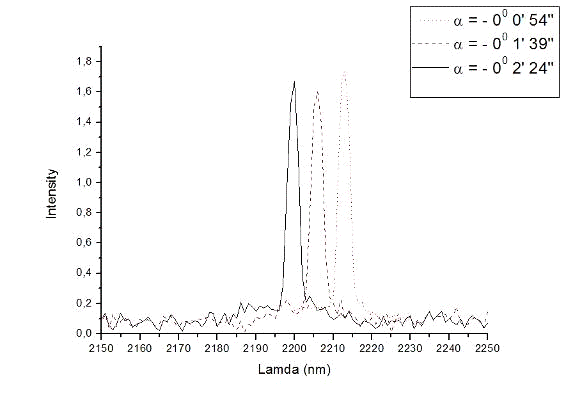 осуществлялась в диапазоне длин волн 2050-2450 нм изменением угла поворота Θзерк. “глухого” зеркала: Θзерк.=90°- φ (Рис. 15). Внесение призмы приводило к незначительному увеличению