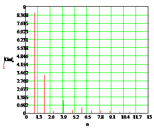 Из получившегося ряда Фурье и спектра амплитуд видно, что основной вклад в