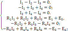 токов в ветвях по законам Кирхгофа