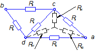 треугольник. Дано: нагрузка: несимметричная, U = 220 В, Rab = 133