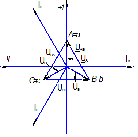 векторных диаграмм токов и напряжений в одной системе координат