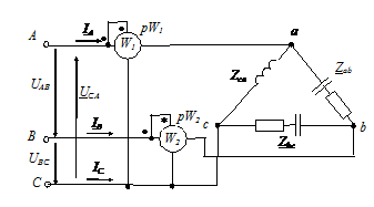 ваттметров для измерения активной мощности каждого трёхфазного приёмника.
