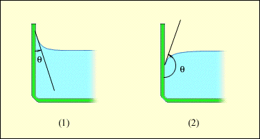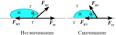 поверхность, образует вогнутый мениск, не смачивающая - выпуклый. В первом