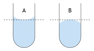 мениском ниже, а над выпуклым выше, чем над плоской поверхностью жидкости. Этим