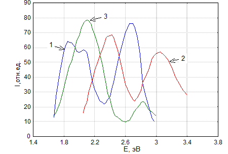 пучка на образцы максимумы полос незначительно сдвигались в длинноволновую