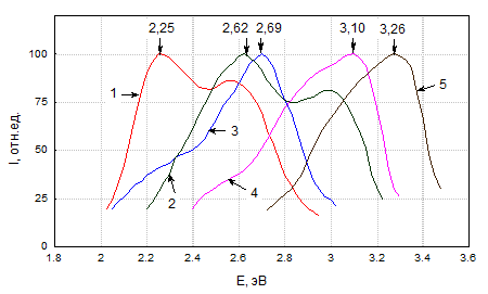 коротковолновой полосы излучения. Сдвиг максимума полосы излучения с