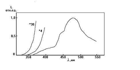 катодолюминесценции состоят из двух полос излучения. Длинноволновая полоса