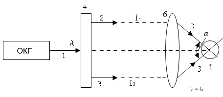 возрастания расстояния между отверстиями в паре, и фокусирующий объектив 4,