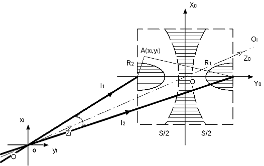через когерентный оптический преобразователь, для случая, когда лазерные пучки