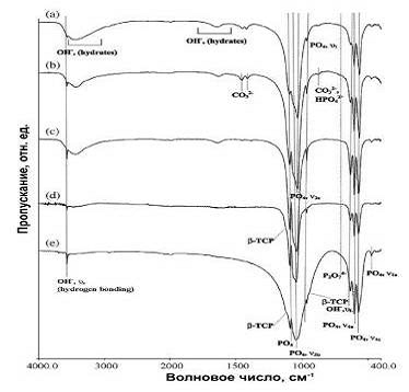 Н2О (1640, 3420 см-1), НРО42- группы (875 см-1) и карбонатных ионов СО32- (872